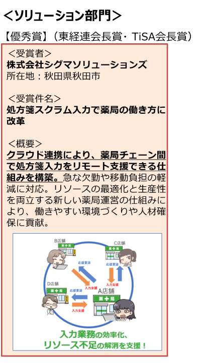 (2)株式会社シグマソリューションズ 部門:ソリューション部門 【優秀賞】(東経連会長賞・ TiSA会長賞)